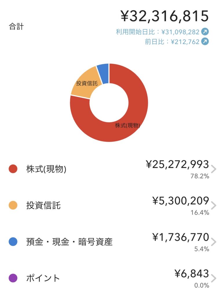 - 株式(現物):25,272,993円(78.2%)