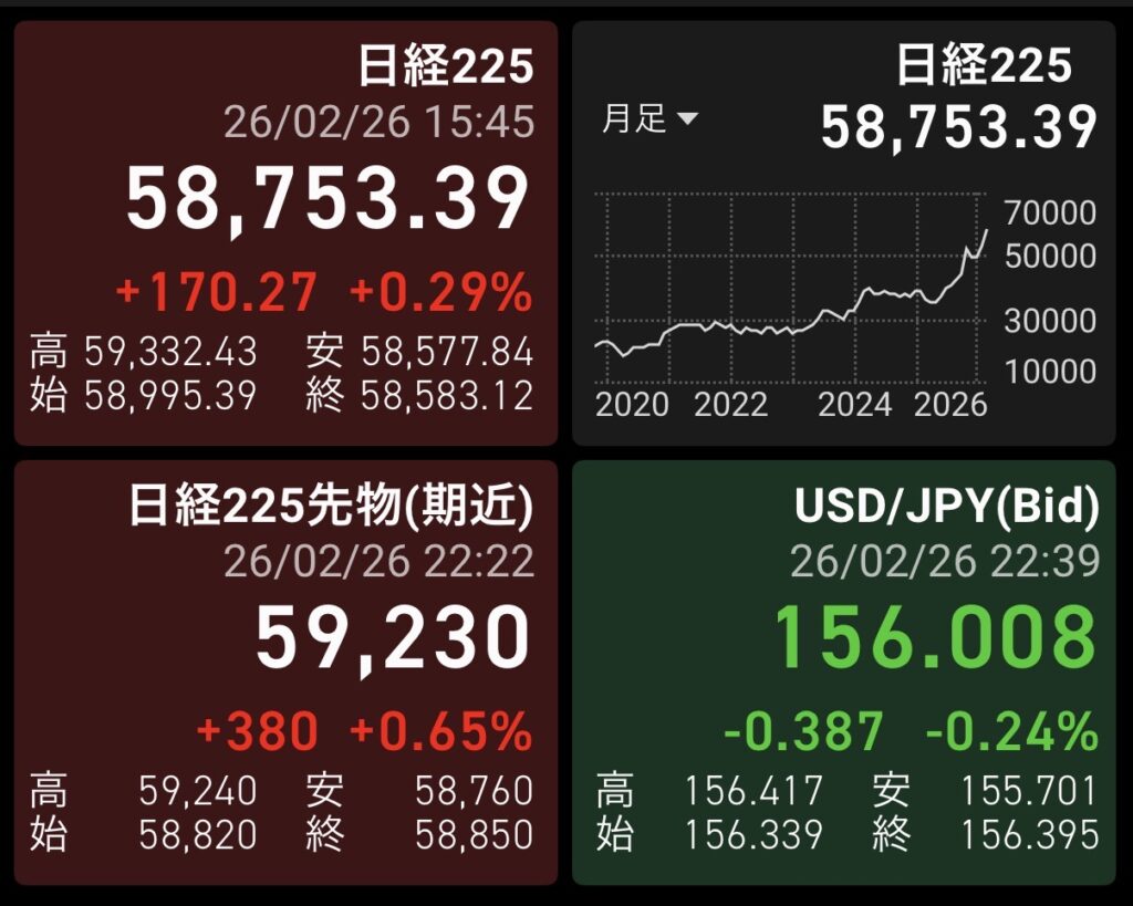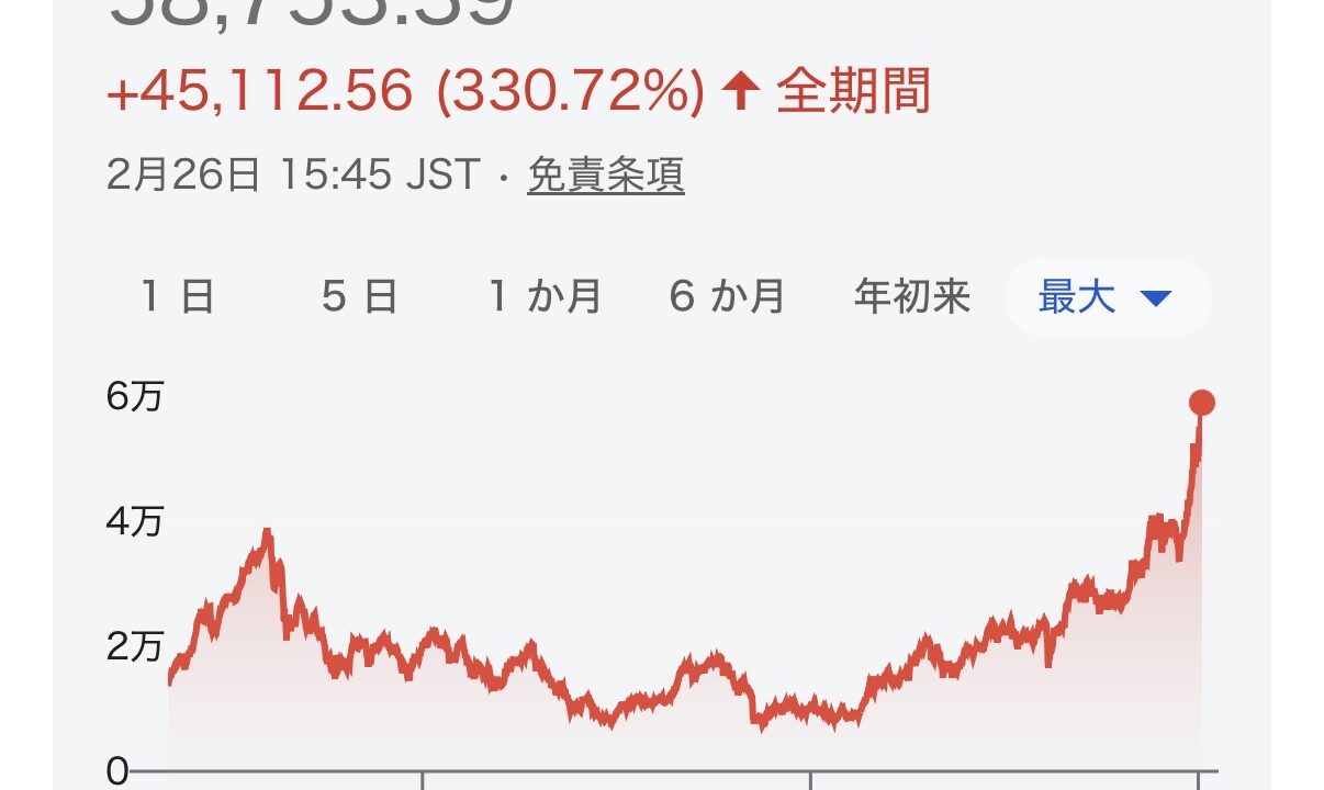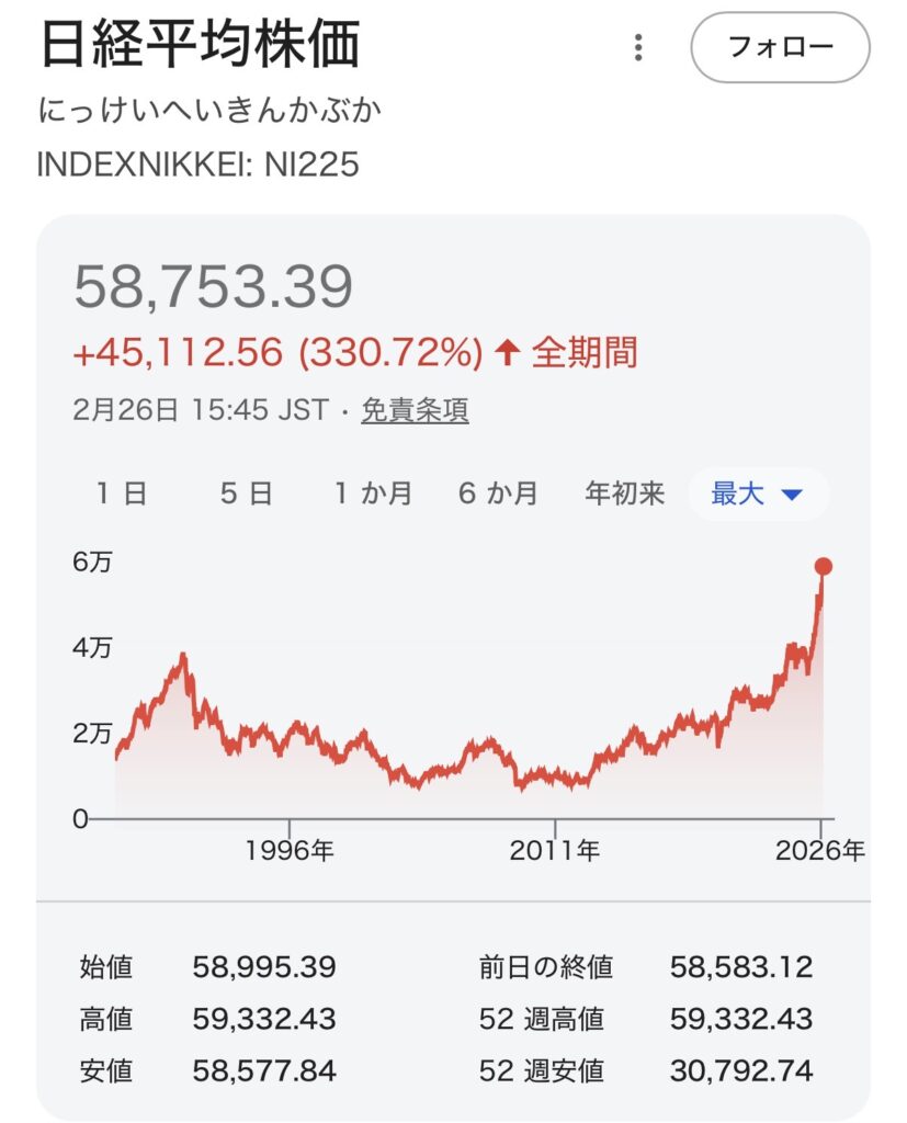 しかし今、日経平均株価は6万円に近づく水準まで上昇しています。