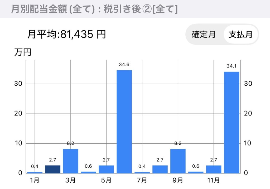 高配当月と低配当月の差はあるものの、着実にベースが底上げされています。