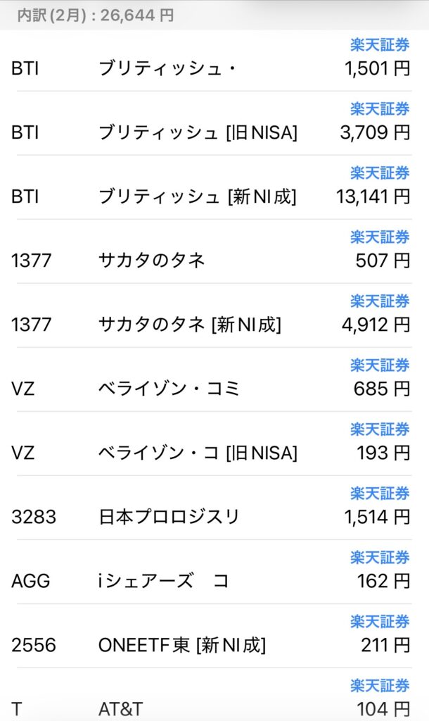 今月の配当は、米国株・日本株・ETF・リートから入金されましたが、今月の主力は BTI。