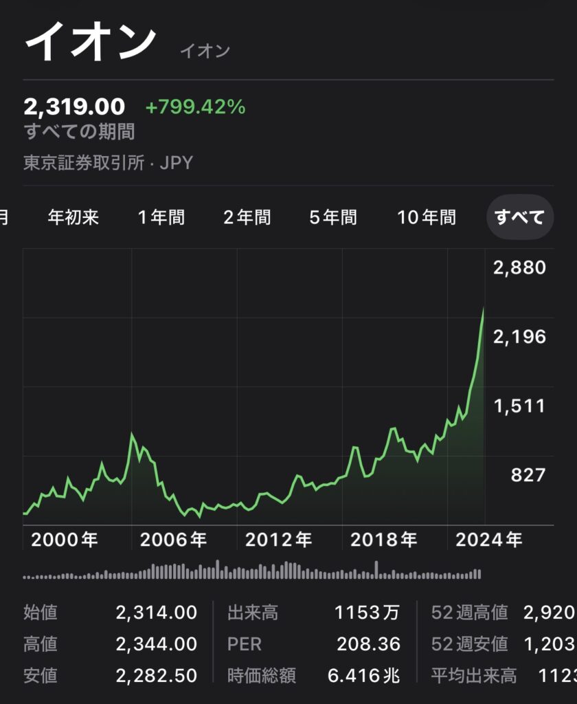 関西地方のみに展開していた頃例えば、2008年3月1日(1株34円)にもし投資できていれば、全国展開とともに株価は大きく成長し100倍以上になっています。