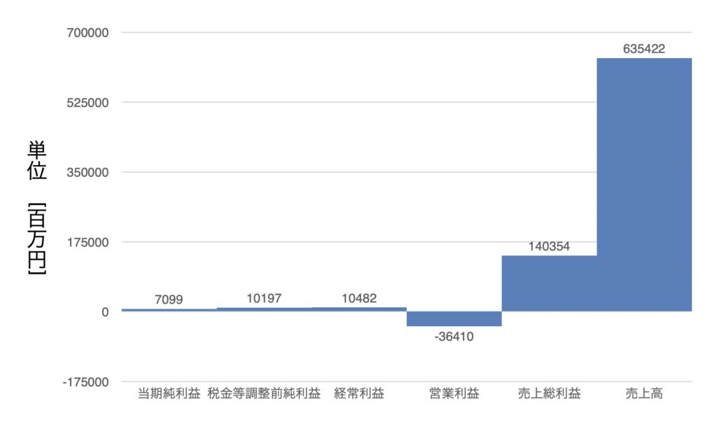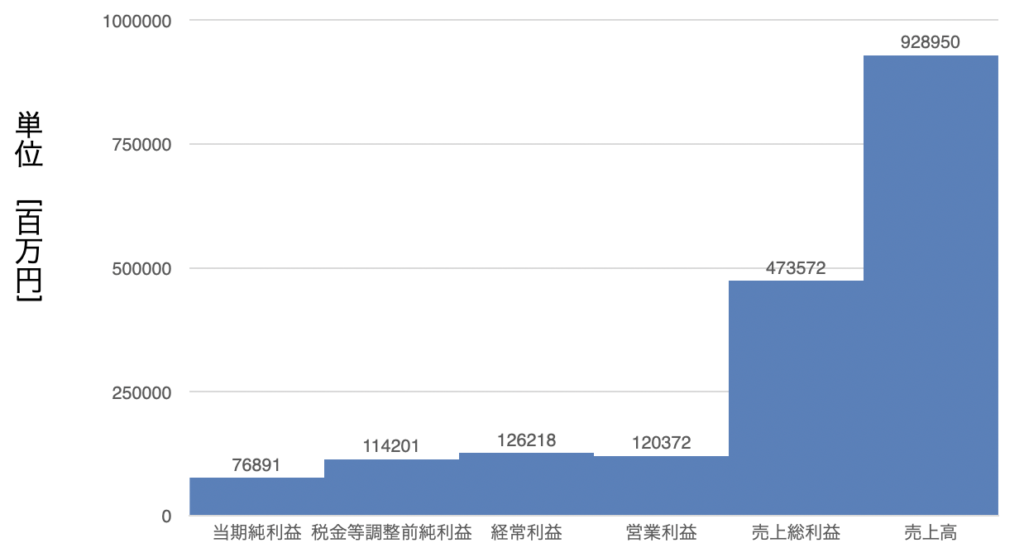 売上高から左に階段状に降りていっていることが分かる。